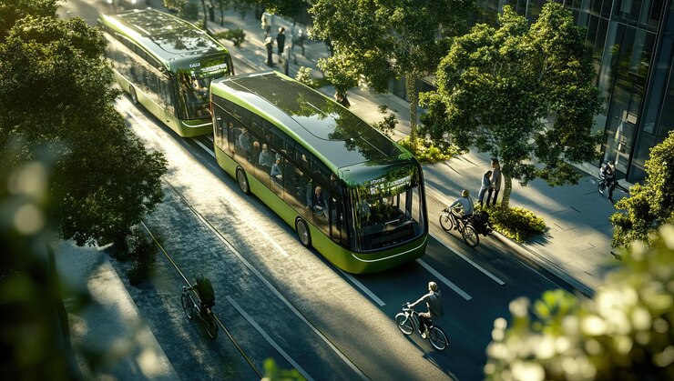 - Electric Buses Electric buses are becoming increasingly popular in urban areas due to their low emissions and cost-effectiveness. These buses use electric motors powered by batteries, which can be charged at designated stations. Electric buses not only reduce greenhouse gas emissions but also lower operating costs compared to diesel buses. Advances in battery technology have improved their range and reduced charging times, making them a practical choice for urban transit systems.